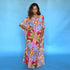 Antica Sartoria Positano Long Kaftan hibiscus print with red background