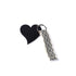 Laser cut plexi glass keychain in the shape of a heart, but with a twist. Decorated with patterned ribbon to emphasize the details!